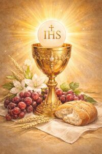 Przyjęcie Ciała i Krwi Chrystusa w Komunii Świętej pogłębia zjednoczenie z Bogiem, gładzi grzechy powszednie (lekkie) i zachowuje od grzechów ciężkich. Kościół więc poleca wiernym, by przyjmowali zawsze Komunię Św., gdy uczestniczą w sprawowaniu Eucharystii. Z miłości dla ludzi pozostał Pan Jezus na zawsze między nami w Najświętszym Sakramencie, nie tylko po to, aby ofiarować się za nas we Mszy Świętej, ale także dlatego, by być pokarmem dla naszych dusz. Przyjmowanie Ciała i Krwi Pana Jezusa nazywamy Komunią Świętą. W Komunii Świętej wierni przyjmują Pana Jezusa pod postacią chleba, a w niektórych wypadkach, za zezwoleniem Księdza Biskupa, także pod postacią wina.